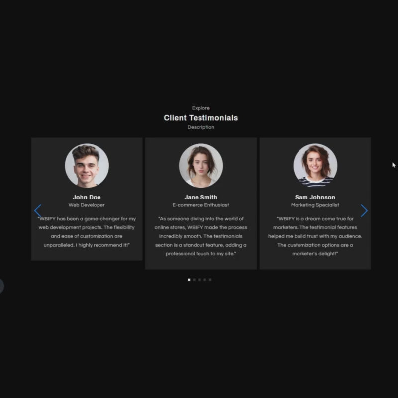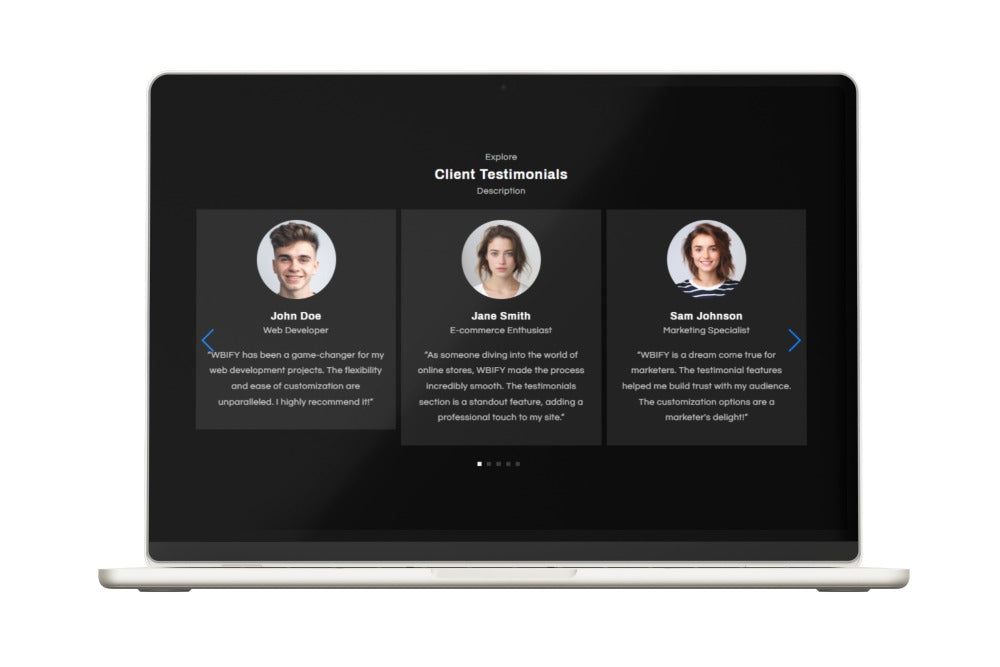 E-commerce Enthusiast“As someone diving into the world of online stores, WBIFY made the process incredibly smooth. The testimonials section is a standout feature, adding a professional touch to my site.”